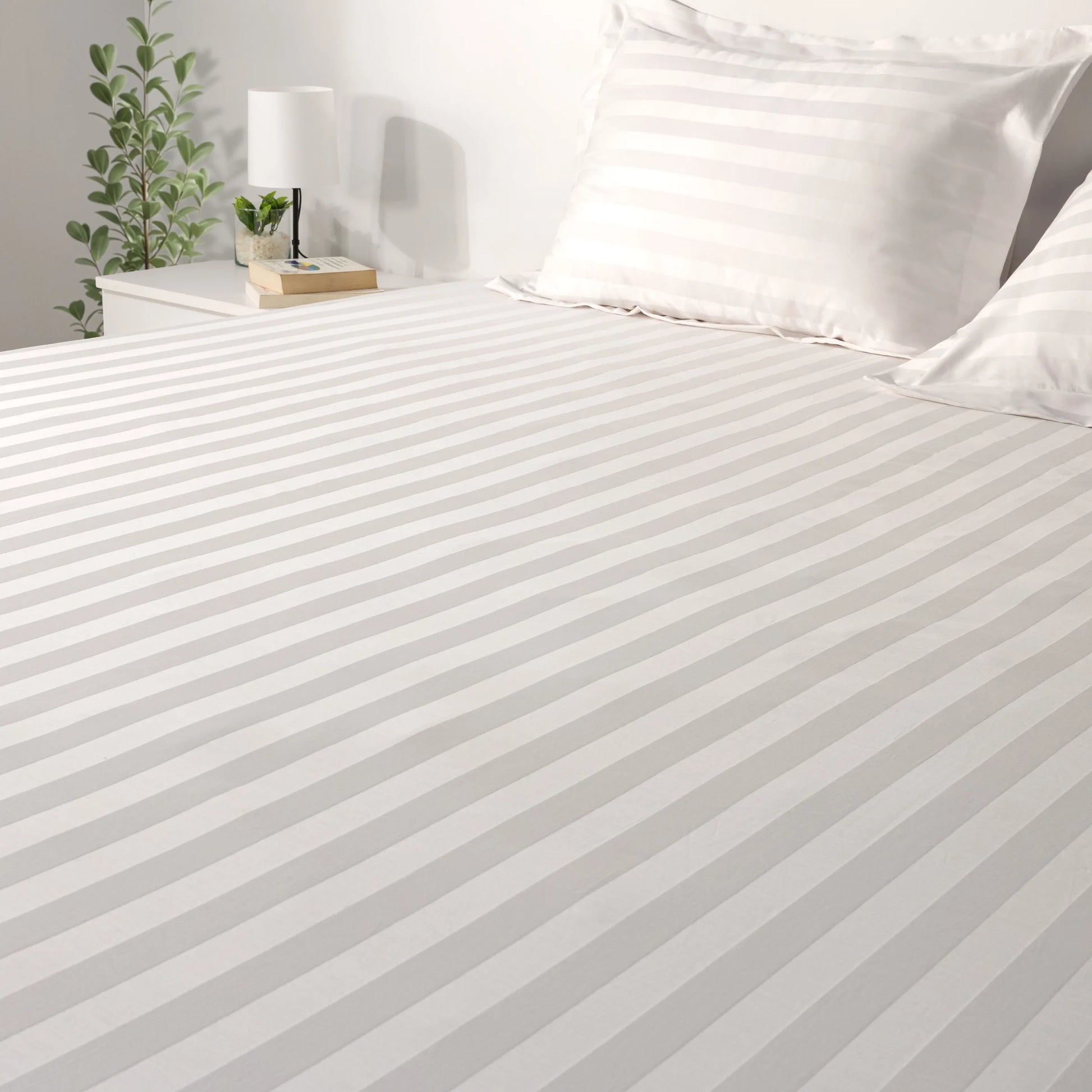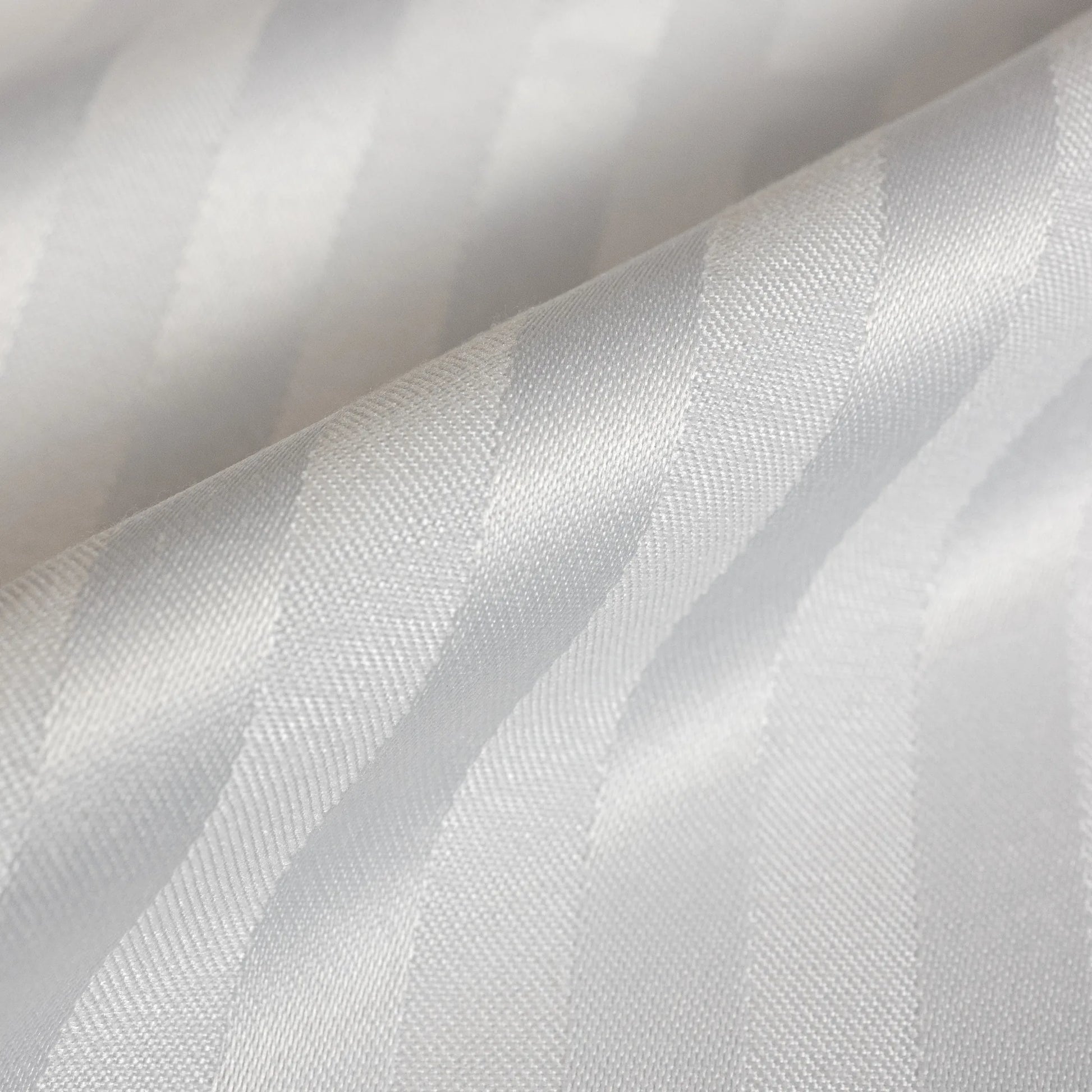 Weave Variants: Available in plain sateen, 1cm stripe, 3cm stripe, new style stripe, and floral jacquard — all in classic white